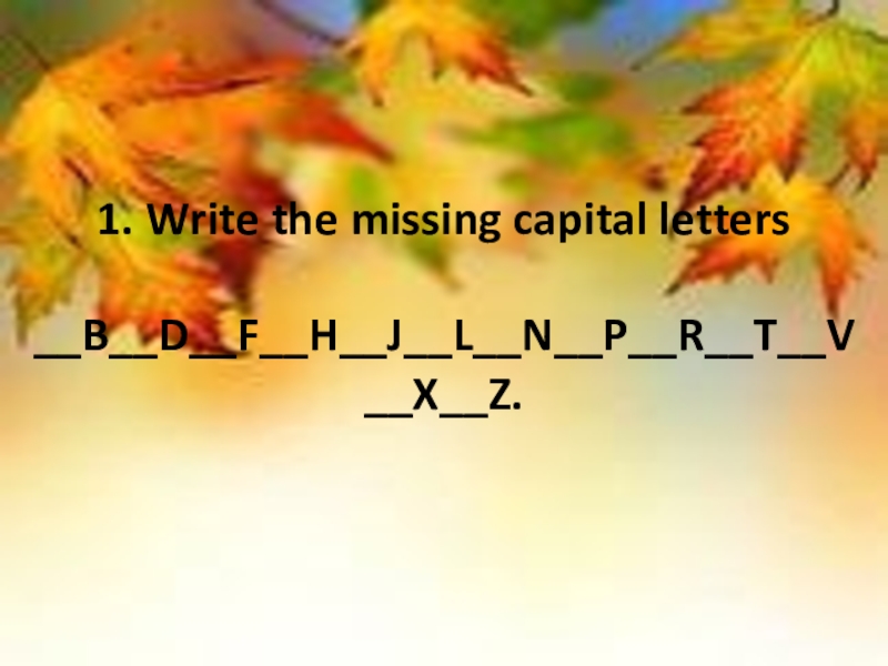 Слайд 51. Write the missing capital letters __B__D__F__H__J__L__N__P__R__T__V__X__Z.
