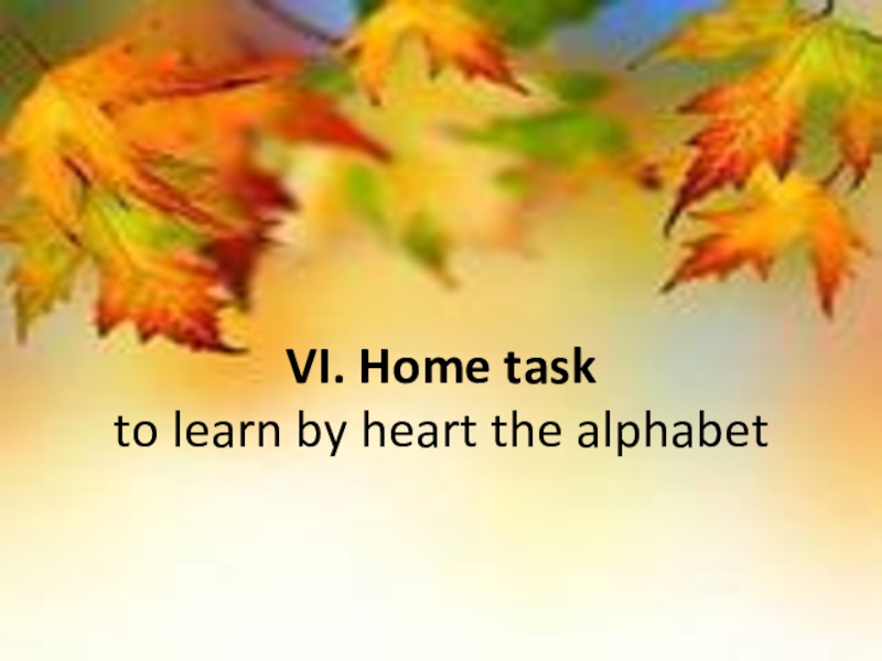 Слайд 12VI. Home task to learn by heart the alphabet