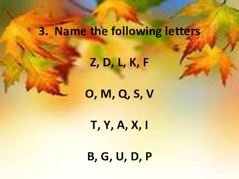 3. Name the following letters  Z, D, L, K, F  O, M, Q, S, V