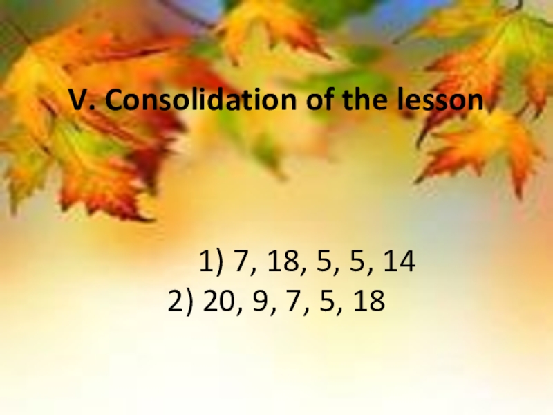 V. Consolidation of the lesson        1) 7, 18, 5, 5,