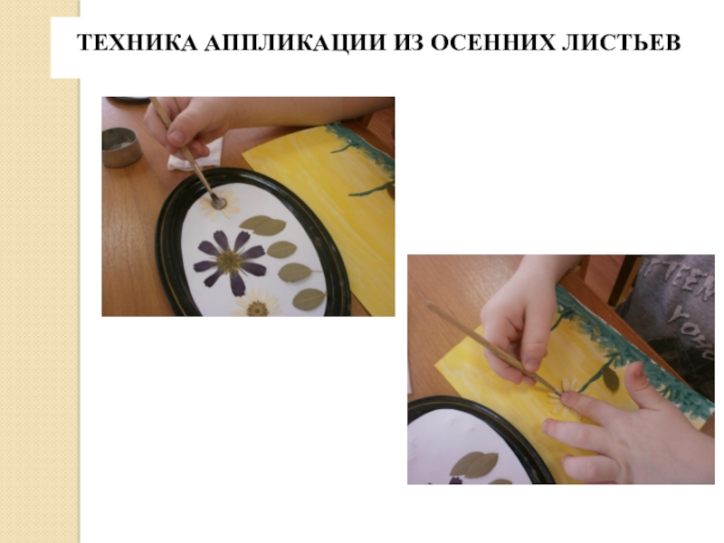 Слайд 9ТЕХНИКА АППЛИКАЦИИ ИЗ ОСЕННИХ ЛИСТЬЕВ