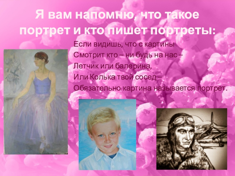 Слайд 3Я вам напомню, что такое портрет и кто пишет портреты: