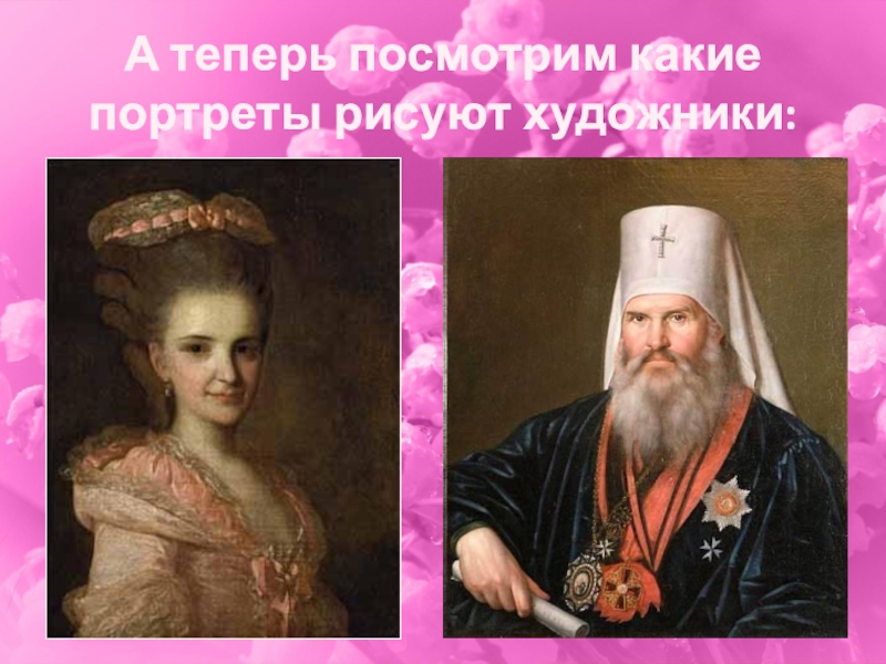 Слайд 4А теперь посмотрим какие портреты рисуют художники: