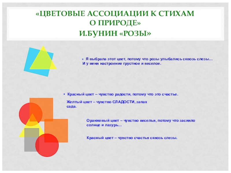 Желтый цвет – чувство СЛАДОСТИ, запах сада.