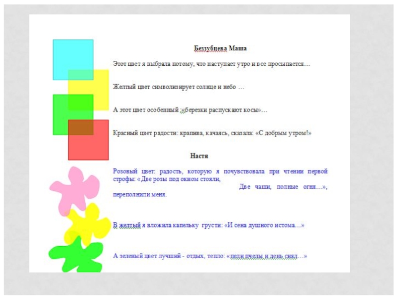 Оранжевый цвет – чувство веселья, потому что засияло солнце и лазурь…