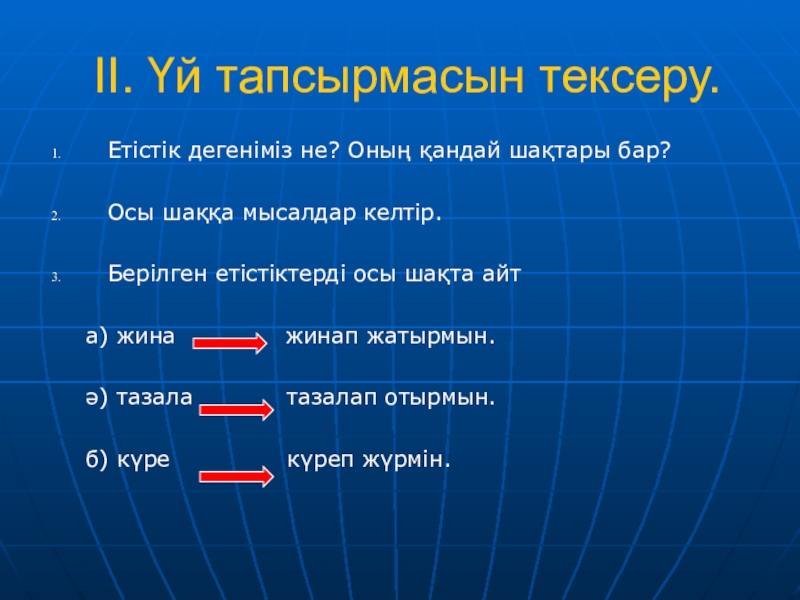 Аяжан атасының ауылына келді. (Өткен шақ)