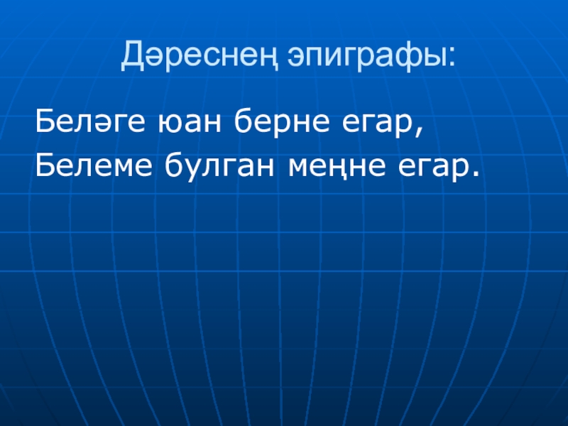 Дәреснең эпиграфы:Беләге юан берне егар,Белеме булган меңне егар.