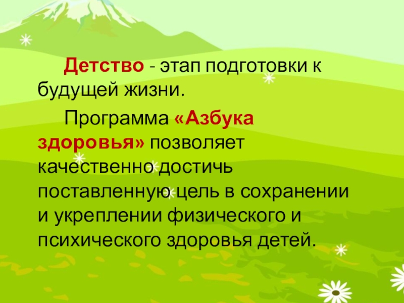 Презентация, доклад по Азбуке здоровья Формирование здорового образа жизни у детей дошкольного возраста