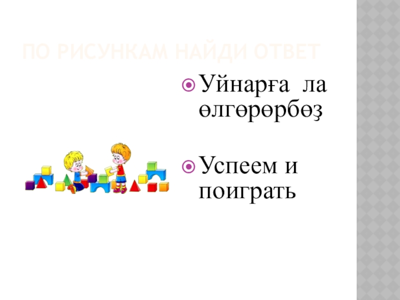 По рисункам найди ответУйнарға ла  өлгөрөрбөҙУспеем и поиграть