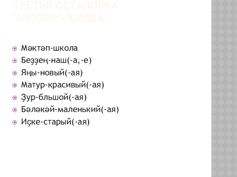 Слайд 13Третья остановка "Һүҙҙәр"-"Слова“