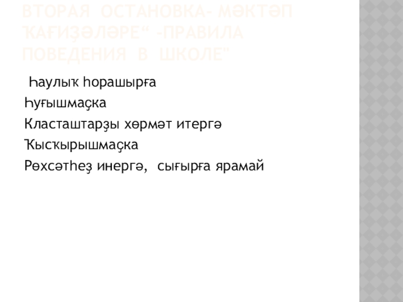 Вторая остановка- Мәктәп ҡағиҙәләре“ -Правила поведения в школе