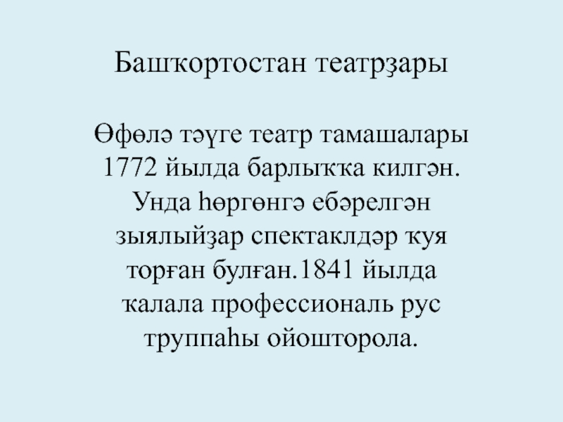ебәрелгән зыялыйҙар спектаклдәр ҡуя торған булған.1841 йылда ҡалала профессиональ рус труппаһы ойошторола.