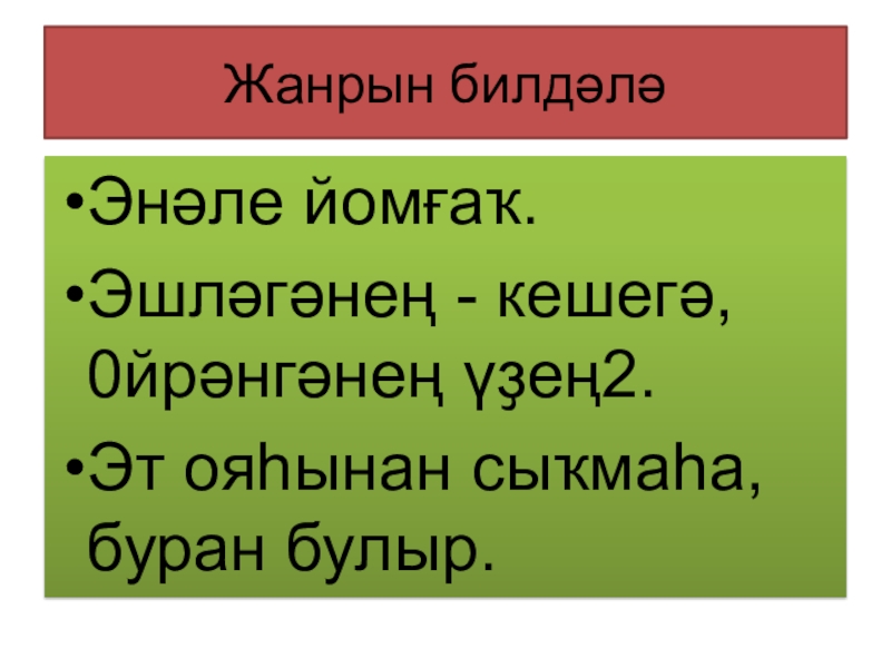 Слайд 6Жанрын билдәлә