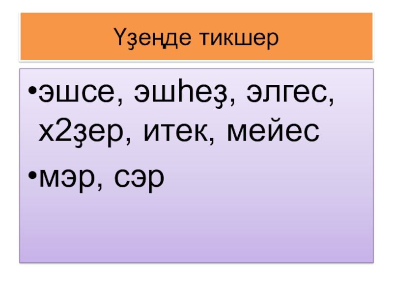 Слайд 5Үҙеңде тикшер