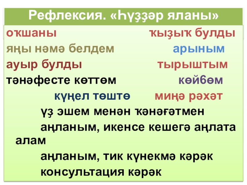 Слайд 21Рефлексия. «Һүҙҙәр яланы»