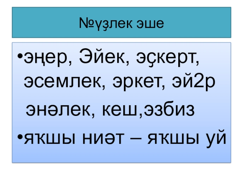 №үҙлек эшеэңер, Эйек, эҫкерт, эсемлек, эркет, эй2р энәлек, кеш,эзбизяҡшы ниәт – яҡшы уй