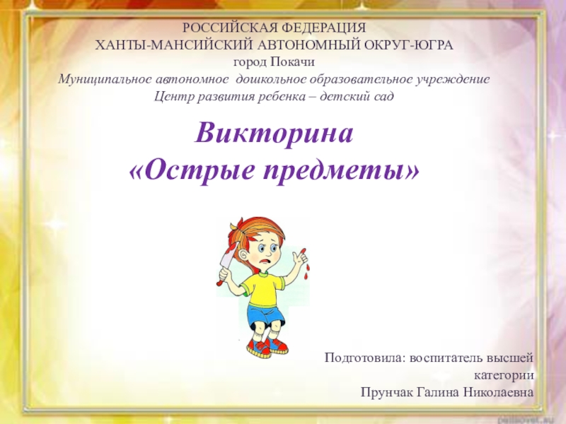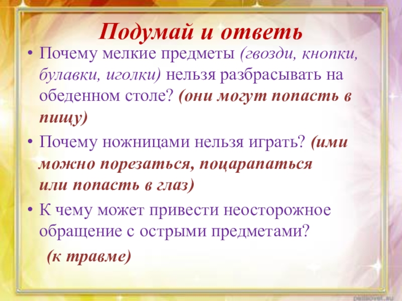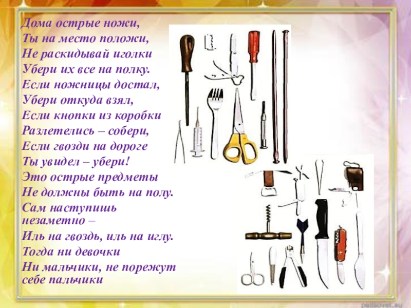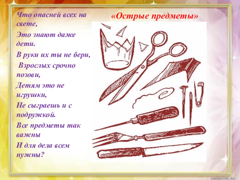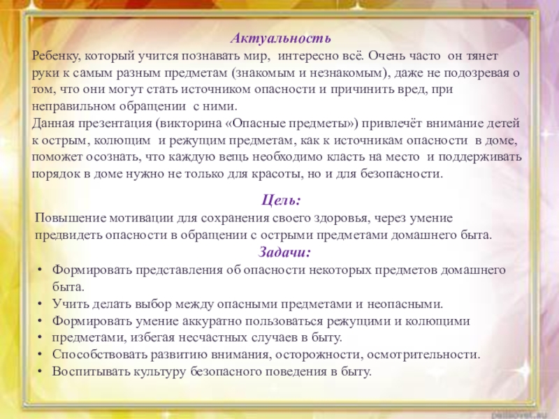 Повышение мотивации для сохранения своего здоровья, через умение предвидеть опасности в обращении с острыми предметами домашнего быта.