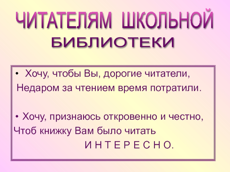 ЧИТАТЕЛЯМ ШКОЛЬНОЙ
