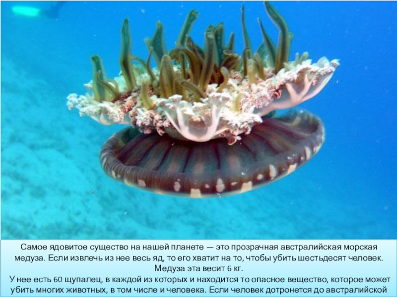 Слайд 23Самое ядовитое существо на нашей планете — это прозрачная австралийская морская