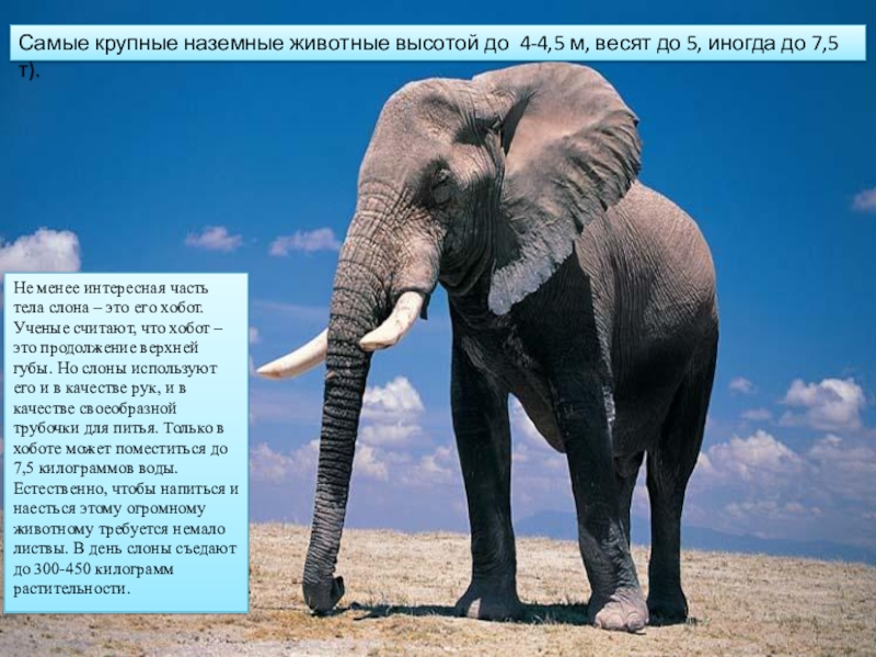 Слайд 9Самые крупные наземные животные высотой до 4-4,5 м, весят до 5,