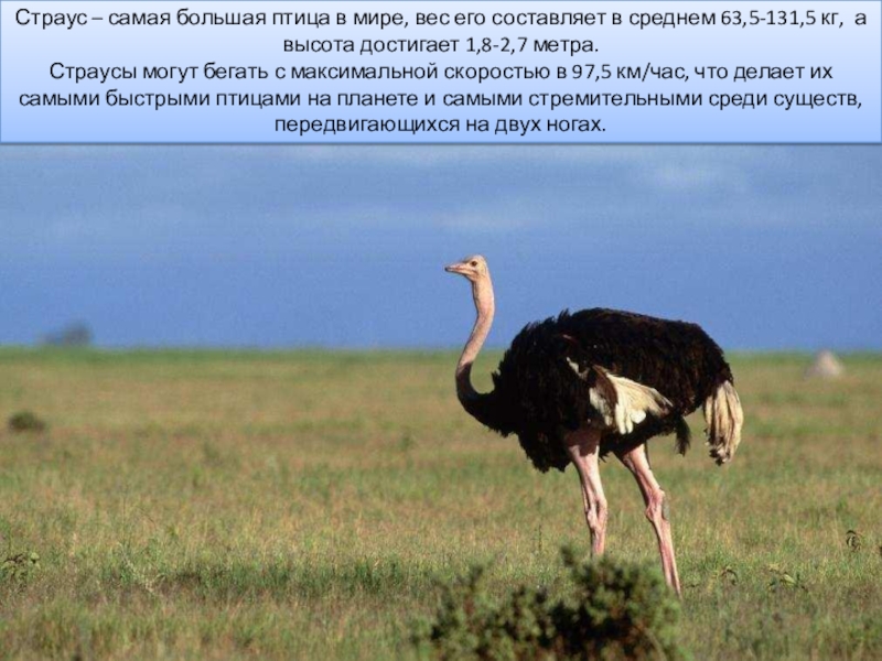 Слайд 16Страус – самая большая птица в мире, вес его составляет в