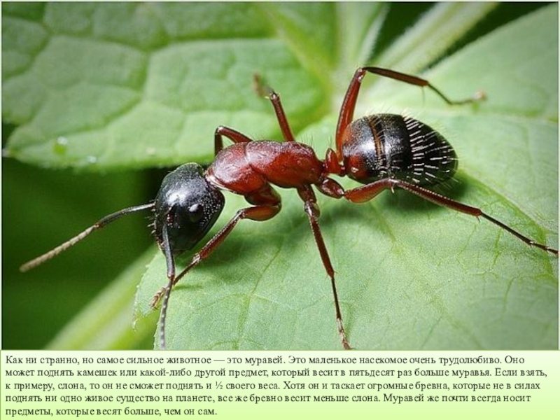 Слайд 21Как ни странно, но самое сильное животное — это муравей. Это
