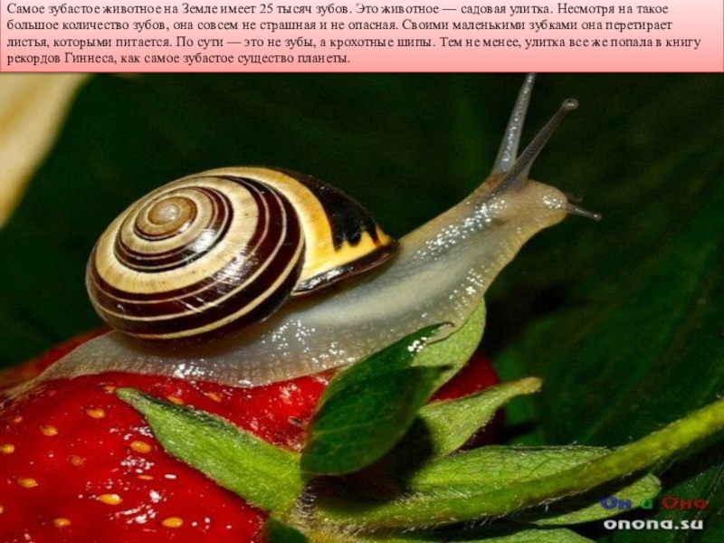 Слайд 25Самое зубастое животное на Земле имеет 25 тысяч зубов. Это животное