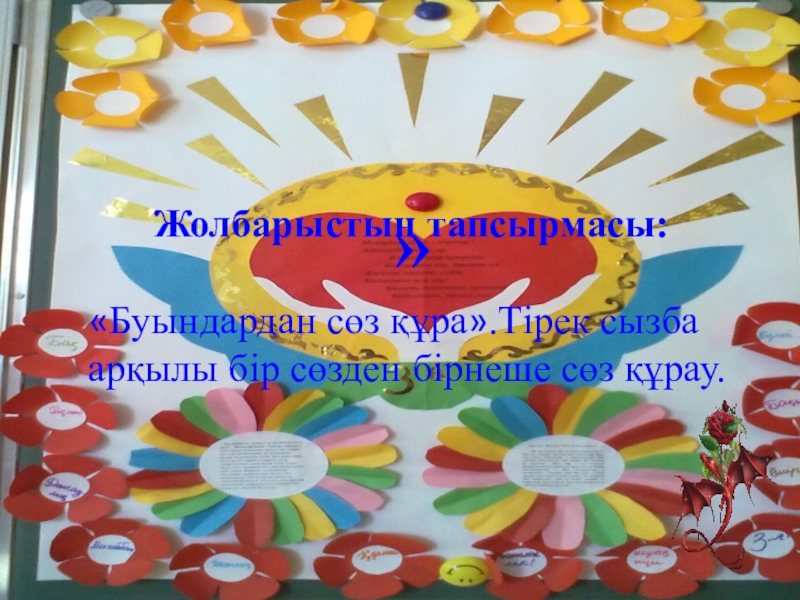 »   Жолбарыстың тапсырмасы:     «Буындардан сөз құра».Тірек сызба