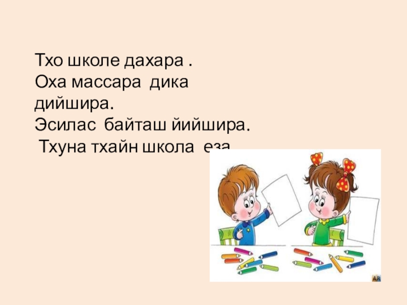 Тхо школе дахара . Оха массара дика дийшира.Эсилас байташ йийшира. Тхуна тхайн школа еза.