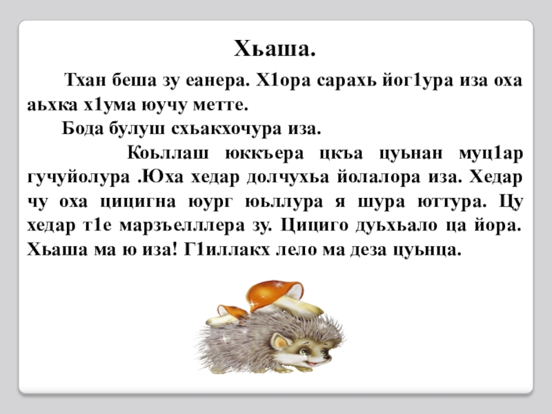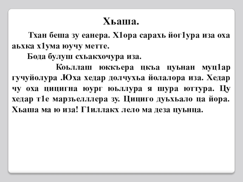 Презентация, доклад по чеченскому языку Изложени Хьаша 3 класс