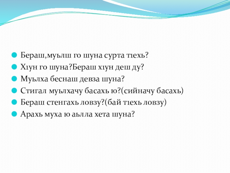 элп а довзийтар, и юьххьехь, юккъехь, чаккхенгахь долу дешнаш далор, суьрте а хьовсуш предложенеш яло 1амар, мате болу безам кхиор, дешархойн къамел кхиор.