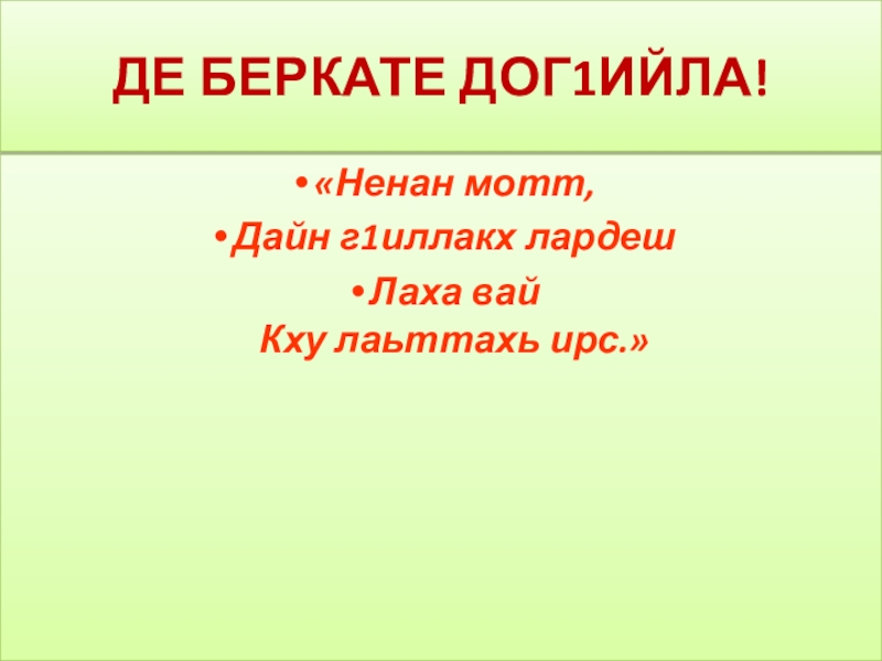 ДЕ БЕРКАТЕ ДОГ1ИЙЛА!«Ненан мотт,Дайн г1иллакх лардеш Лаха вай  Кху лаьттахь ирс.»