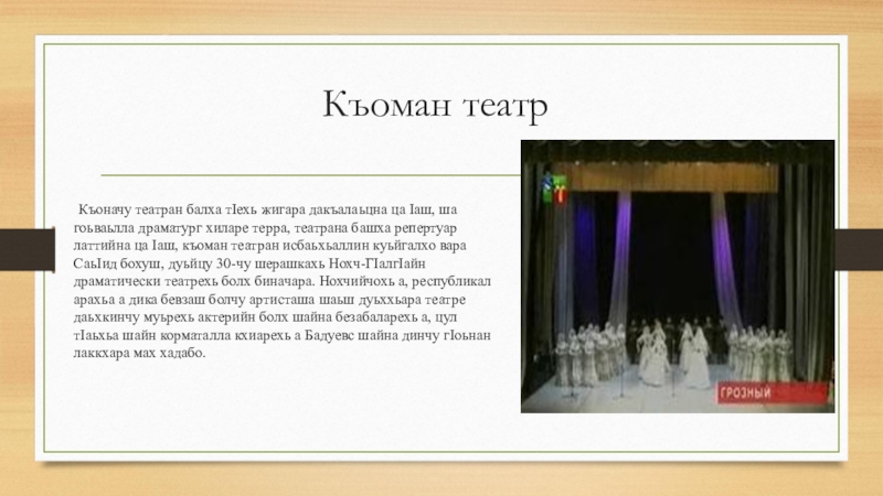 Къоман театран сцени тIехь, даим а шен кхиам а болуш,
