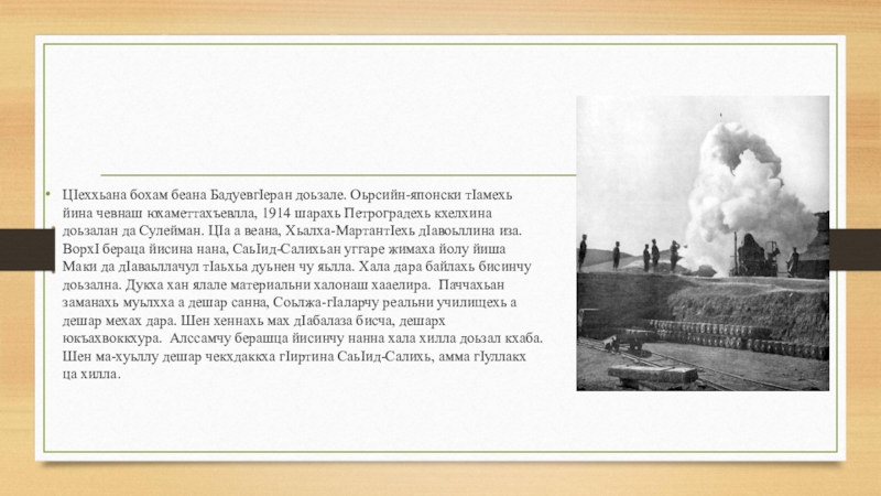 Слайд 3ЦIеххьана бохам беана БадуевгIеран доьзале. Оьрсийн-японски тIамехь йина чевнаш юхаметтахъевлла, 1914