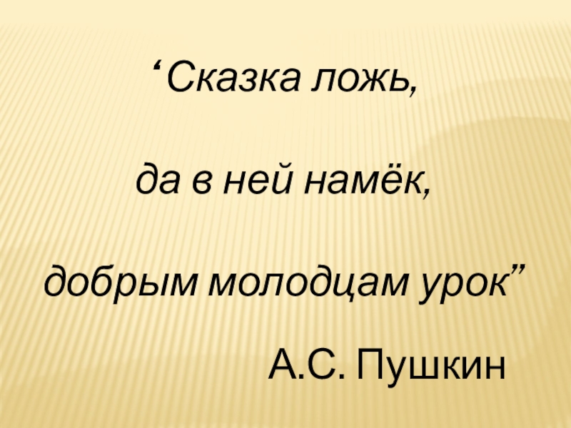 “Сказка ложь, да в ней намёк, добрым молодцам урок”А.С. Пушкин