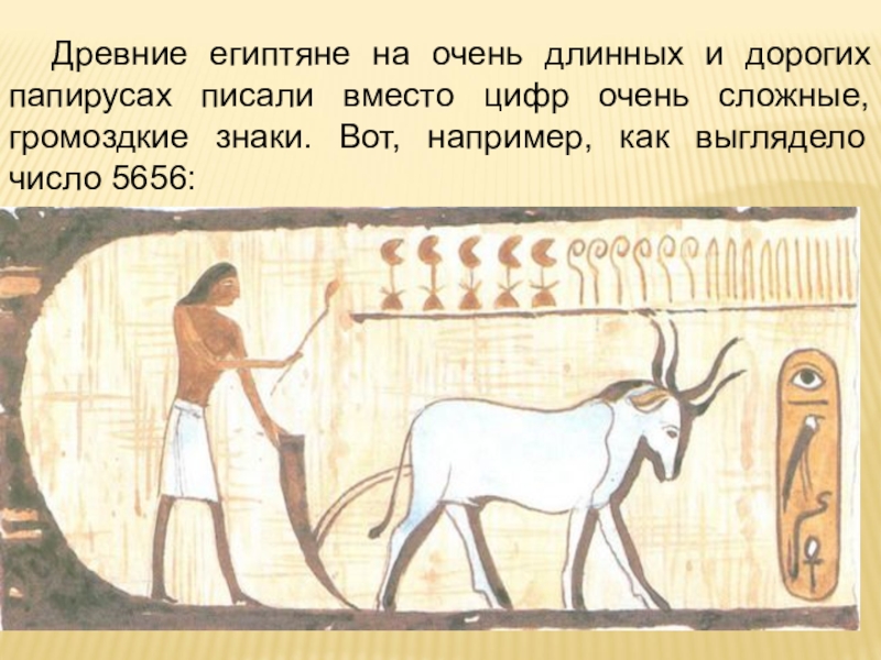 Слайд 11Древние египтяне на очень длинных и дорогих папирусах писали вместо цифр