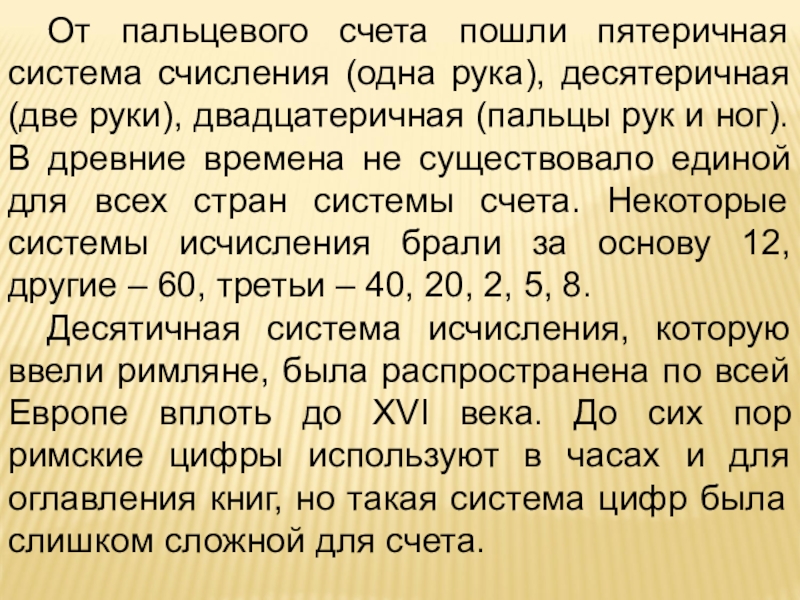 Слайд 15От пальцевого счета пошли пятеричная система счисления (одна рука), десятеричная (две