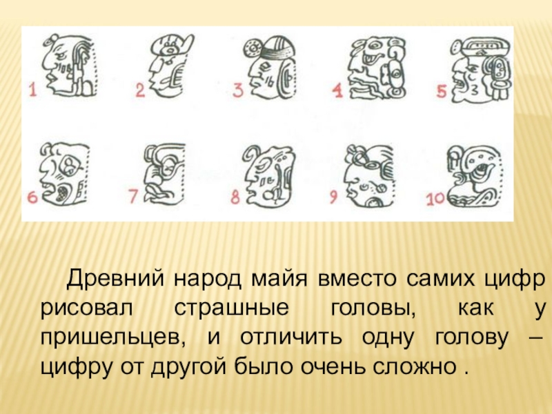 Слайд 8Древний народ майя вместо самих цифр рисовал страшные головы, как у