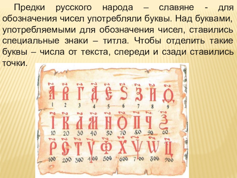 Слайд 16Предки русского народа – славяне - для обозначения чисел употребляли буквы.