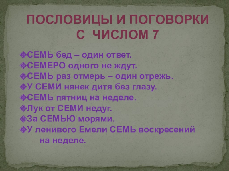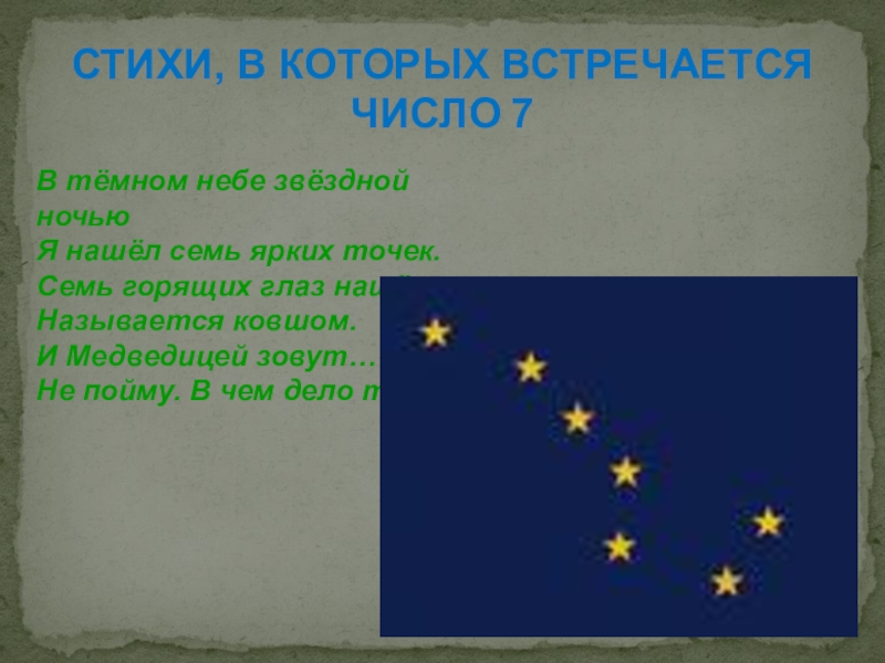СТИХИ, В КОТОРЫХ ВСТРЕЧАЕТСЯ ЧИСЛО 7