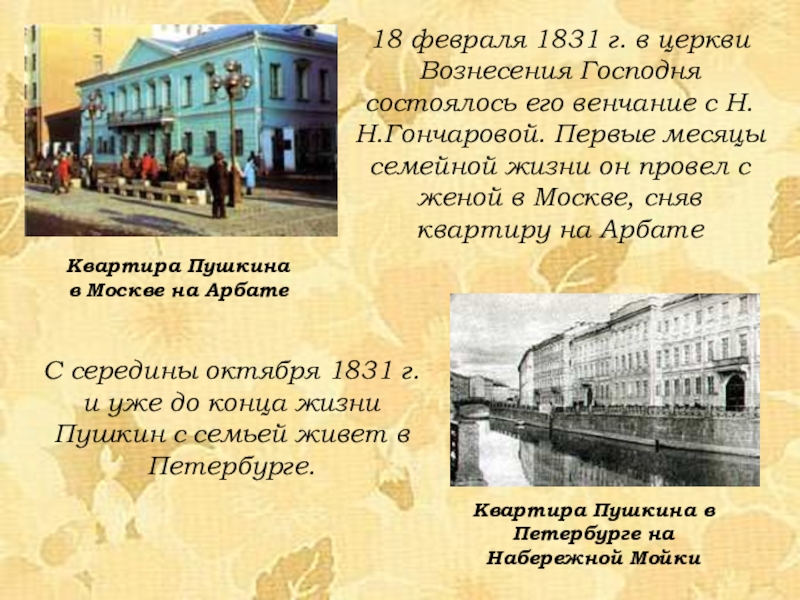 С середины октября 1831 г. и уже до конца жизни Пушкин с семьей живет в Петербурге.