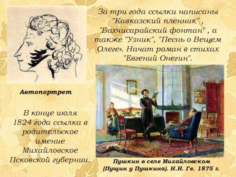 1824 года ссылка в родительское имение Михайловское Псковской губернии.