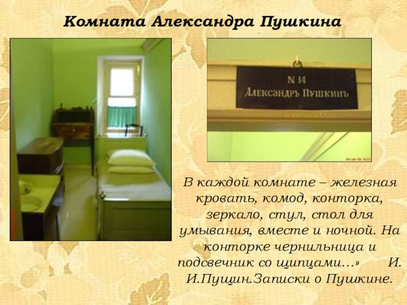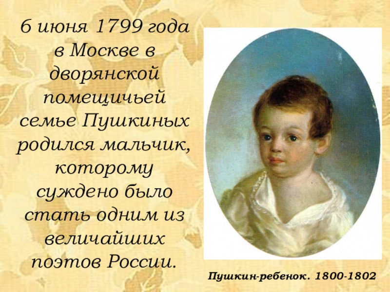 Сразу после окончания Лицея в 1817 году, и вторично в 1819 г. после тяжелой болезни Пушкин приезжал в имение матери с.Михайловское Псковской губернии.