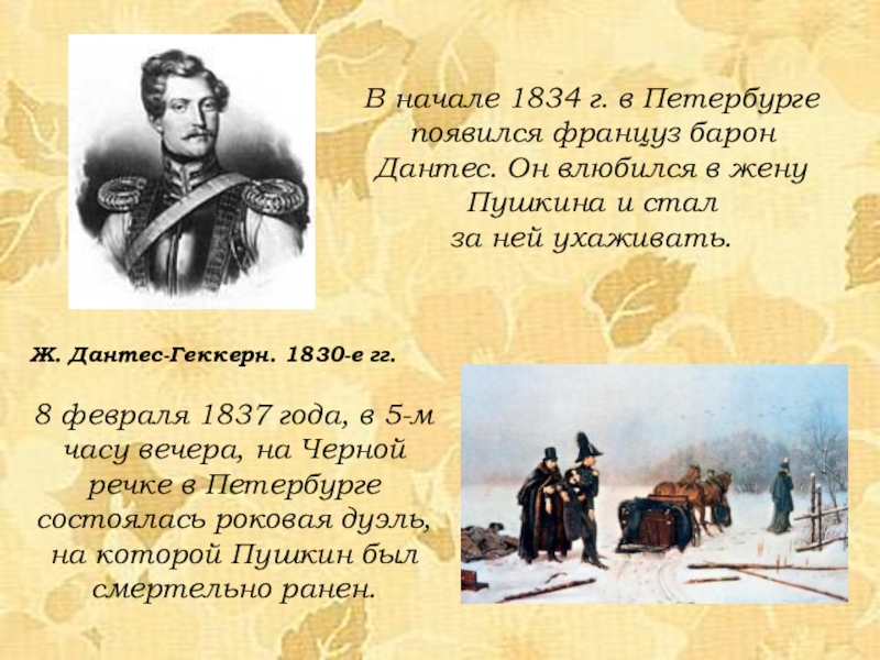 8 февраля 1837 года, в 5-м часу вечера, на Черной речке в Петербурге состоялась роковая дуэль, на которой Пушкин был смертельно ранен.