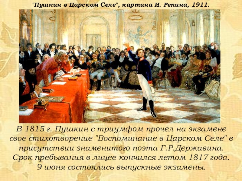 "Пушкин в Царском Селе", картина И. Репина, 1911.