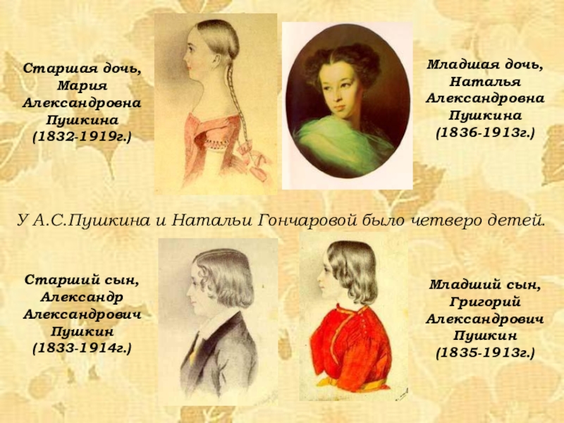 У А.С.Пушкина и Натальи Гончаровой было четверо детей.