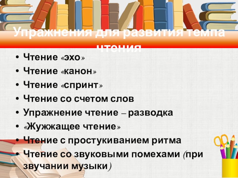 Слайд 14Группы упражнений по совершенствованию навыков чтения