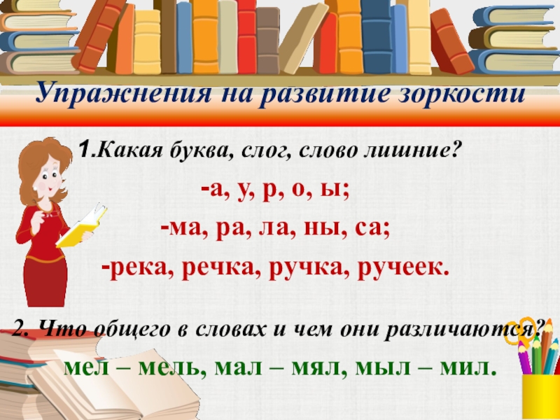 Упражнения, вырабатывающие внимание к слову и его частям и являющиеся предпосылкой правильного чтения