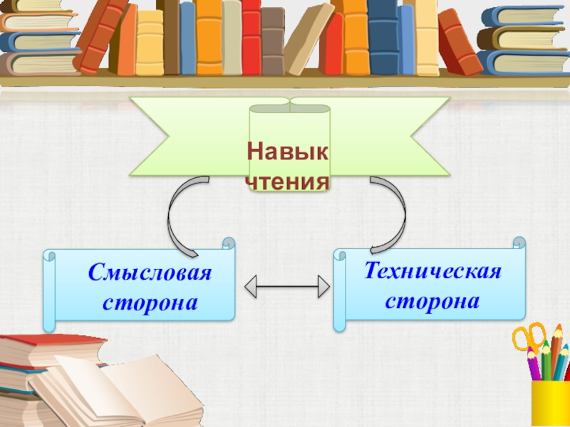 В целом навык чтения складывается из двух сторон – смысловой, которая обеспечивается процессом понимания читаемого, и технической, подчиненной первой и обслуживающей ее.