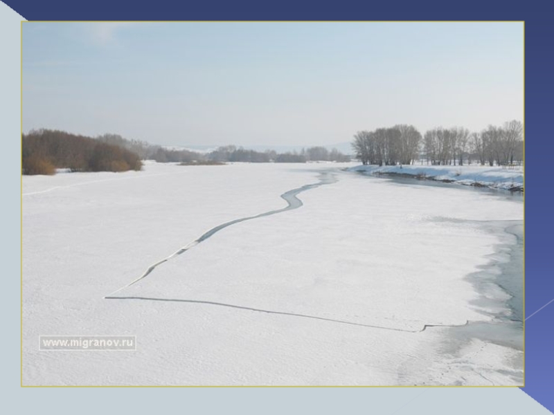 Снег уже теперь не тот, |Потемнел он в поле. ||На озёрах треснул лёд, |Будто раскололи. ||Облака бегут